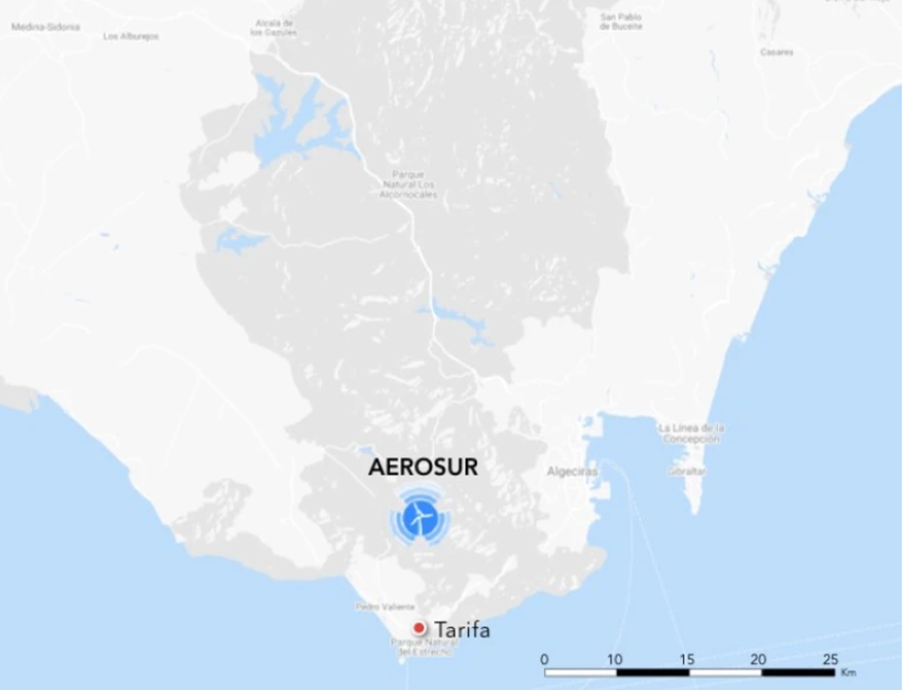 Los parques eólicos La herrería y Pasada de Tejeda se ubican en el municicpio de Tarifa, en la provincia de Cádiz.